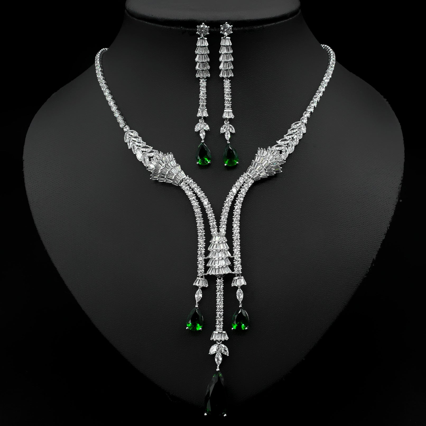Water Drop Zircon Necklace Jewelry Set Flower Earrings Two-Piece Set